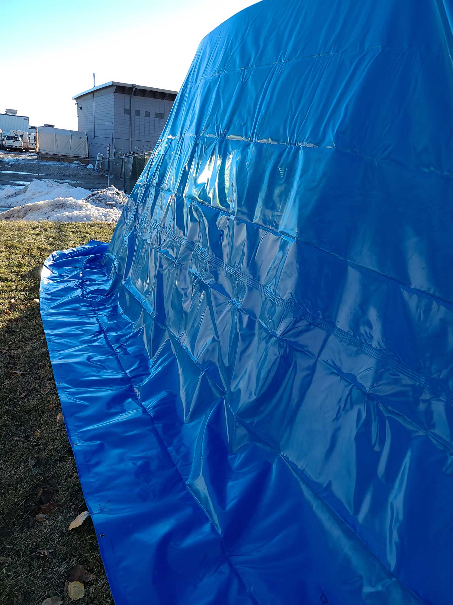 - Weigh the sheet down with a heavy galvanized chain or other material such as sandbags.
