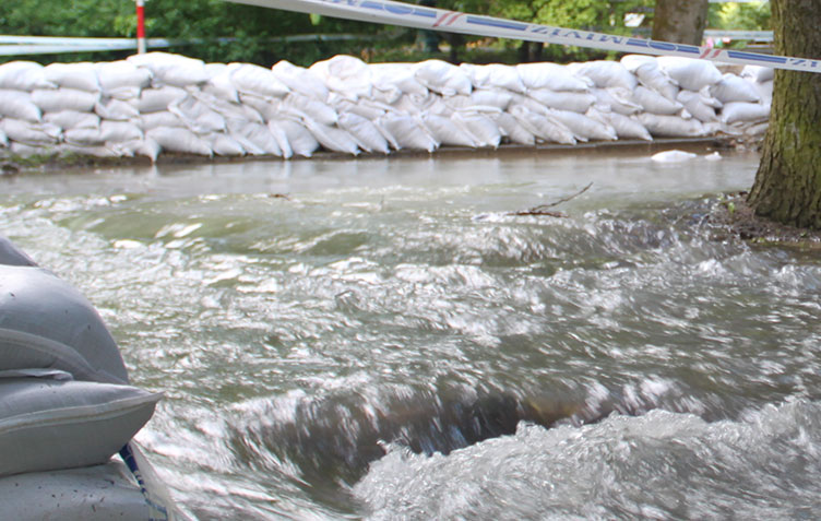 Flood barriers and sandbag dikes are undermined by water seepage which cannot only erode the soil on which the sandbags and barriers lay. They can also result in “floating” water-filled barriers depending on the height and weight of the barriers and the height of the water which has seeped underneath. The lifting of these barriers and the erosion of the soil underneath may cause both sandbag barriers and water-filled barriers to shift position ultimately “breaking” the wall and letting flood water through.